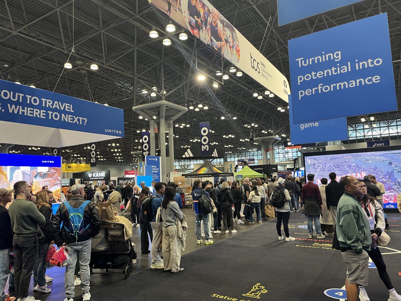 まずはランナーの祭典、EXPO会場へ。 「Turning potential into performance」の巨大なバナーが出迎えてくれました。世界中から集まったランナーたちで会場はすごい熱気!レース本番への期待が一気に高まります。