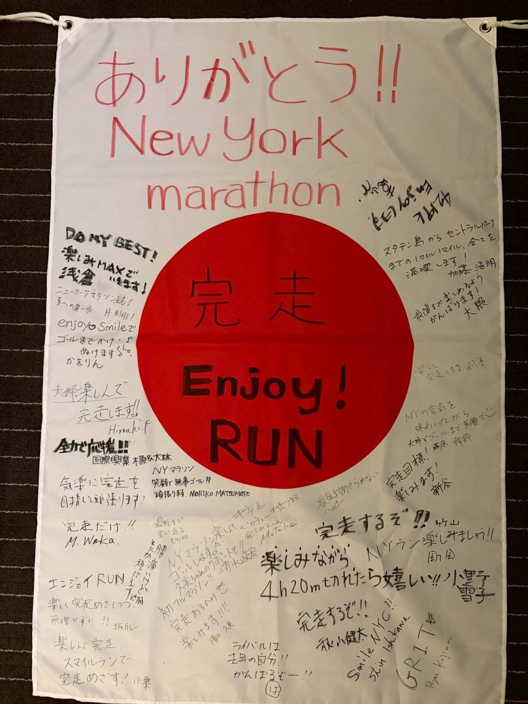 そして、みんなの想いが詰まったこの日の丸の応援フラッグ。 「Enjoy! RUN」「完走するぞ!!」「笑顔でゴール」……たくさんのメッセージが、背中を力強く押してくれました。